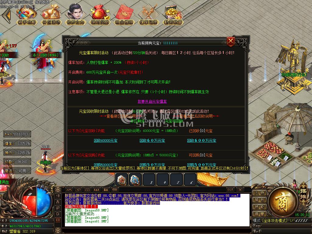 充值30元修罗币领取会员 30元RMB点开启沙城捐献 2元RMB点开启炼狱狂暴