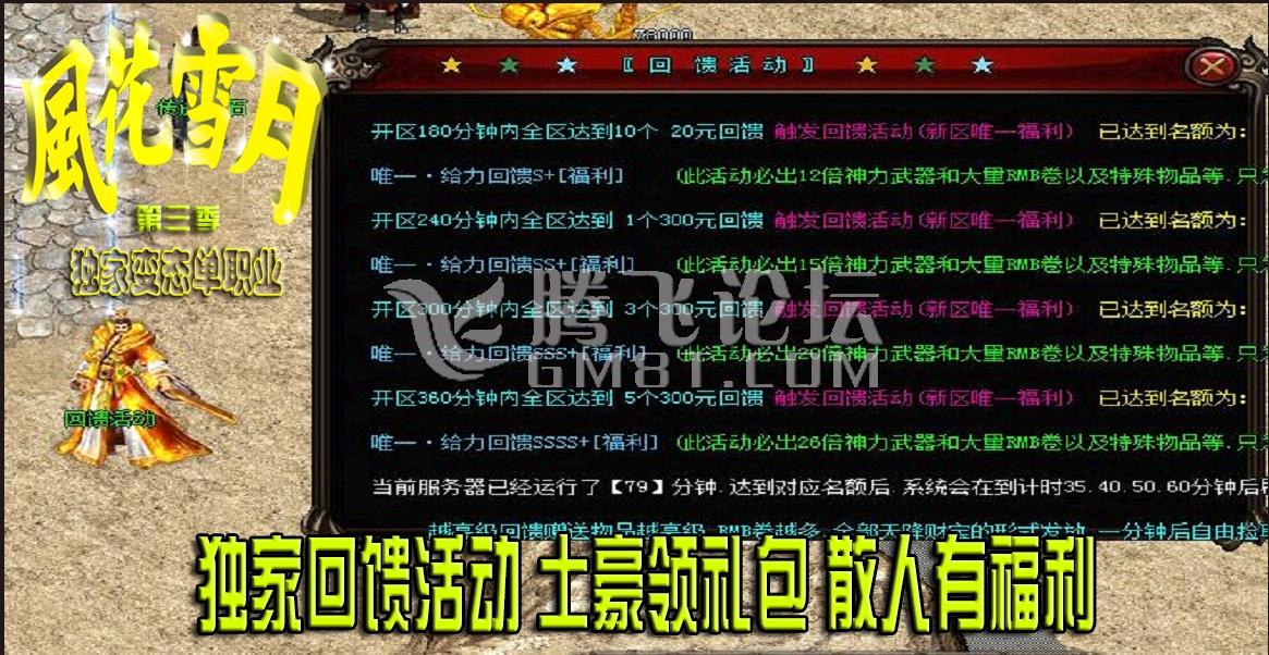 【版本说明】风花雪月变态单职业火爆开放中,品牌大服信誉第一。市场仅此一家!RMB秒激情、耐玩、长久!