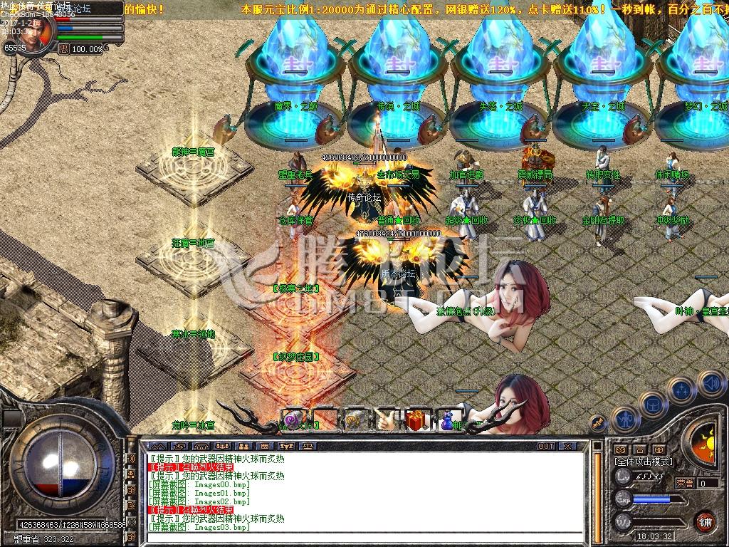 开区介绍:【元宝比例】:1元=20000元宝 游戏点1元=20万。点卡多送80% 网银多送100%