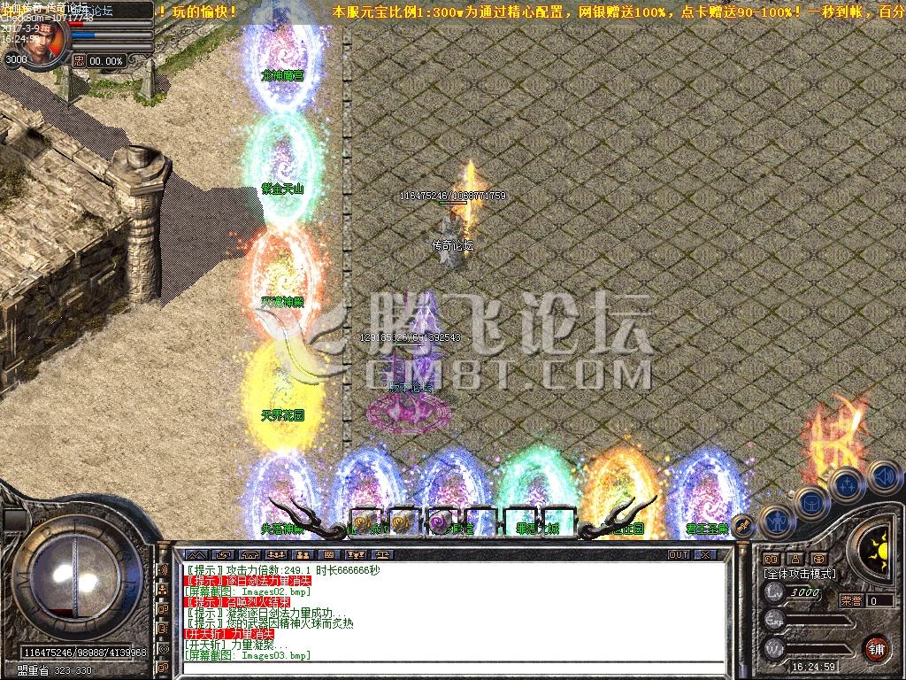 元宝比例1:300W,点卡多送100%,网银多送100%