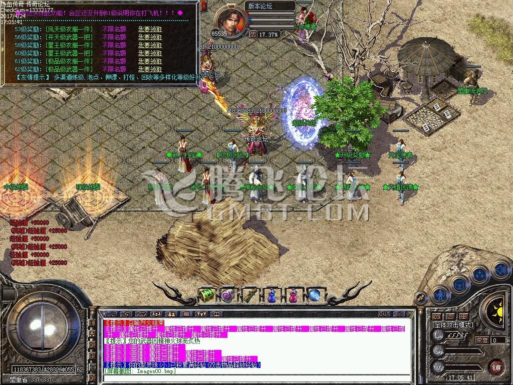 攻城奖励:服务器开放第二天晚上合区.第三天攻城.新区攻城奖励100万元宝.超高奖励等着你来挑战.