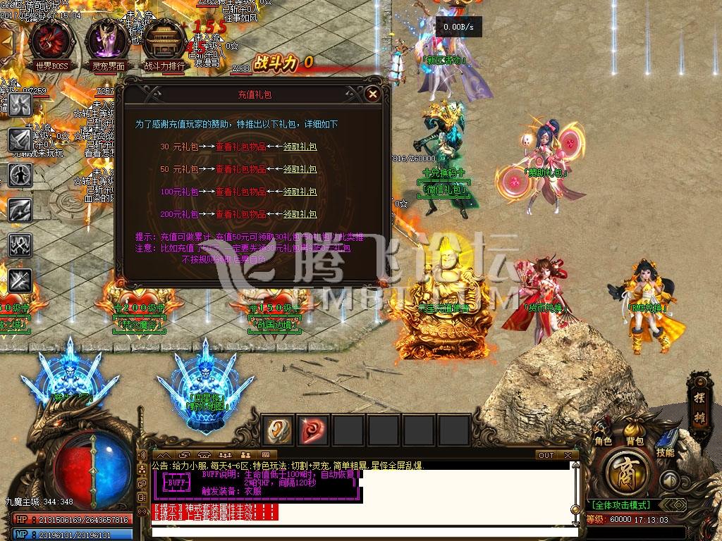 2017-1-1【游戏介绍】:独创打怪模式,全图刷BOSS,调整所有分区爆率,激情耐玩。