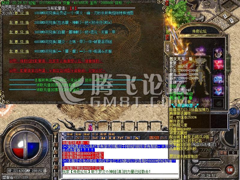 特色功能:穿戴装备自动叠加神力 1季血量封顶10E 各种超级BUFF 闪瞎你的双眼