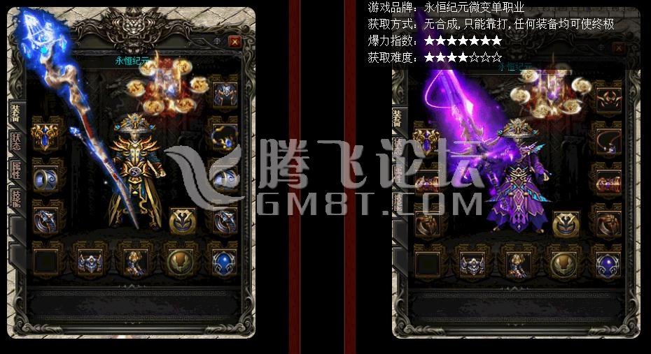 8【装备特色】: 所有装备分,破损-优良.完美.史诗.经过测试新手套极品属性完全可以跟终极套装抗衡!!