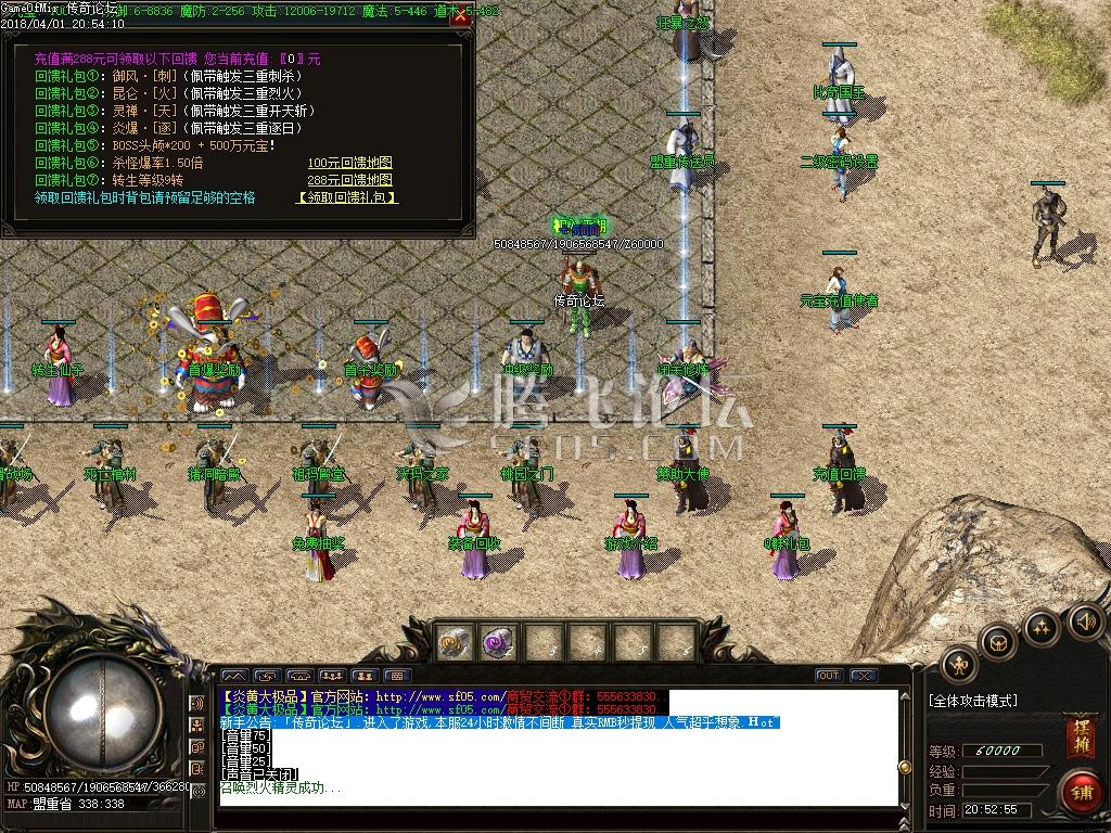 8月独家可可火龙三职业-带假人-带光柱-太乙真人-金币-账号保值-行会争霸