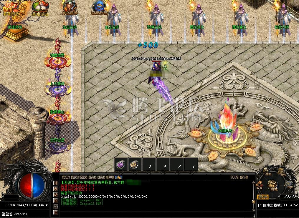 游戏介绍 元宝1:1000 充值点1:1 网银多送100% 点卡多送100%【无任何特殊比例】以下为测试截图,无需考虑等级血量