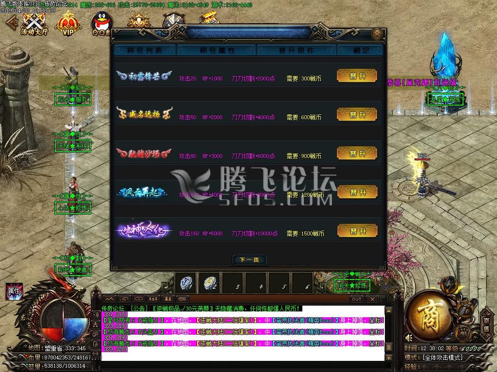 【元宝比例】: 元宝比例1:80000 戦币1:200 积分1:1 请自行平台冲值,游戏中喊话有比例全是骗子注意防骗