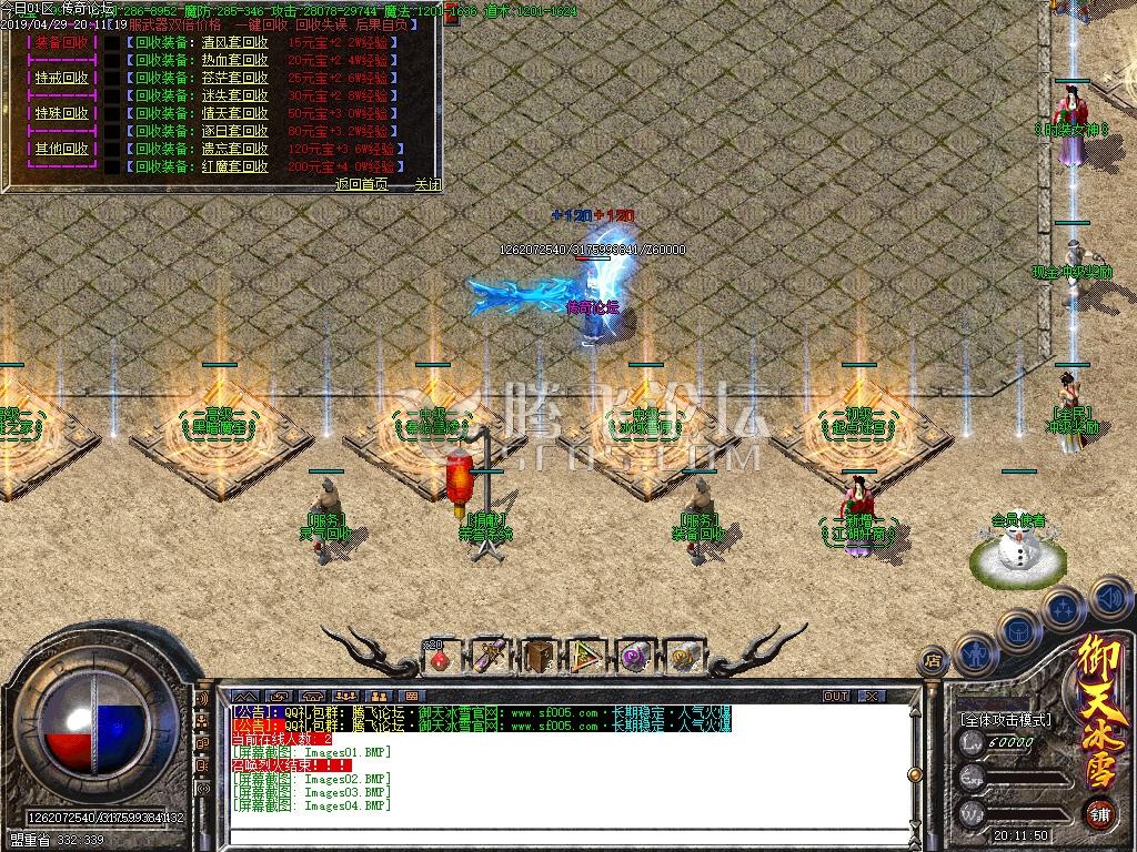 4月大秦赋冰雪打米单职业-带假人-带光柱-沙城捐献-自动回收-通天神塔-实物回收