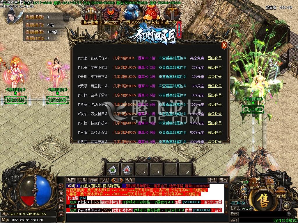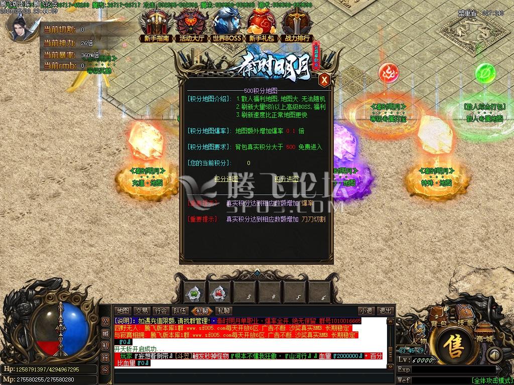 【充值比例】1元=20万元宝+50积分+1充值点!