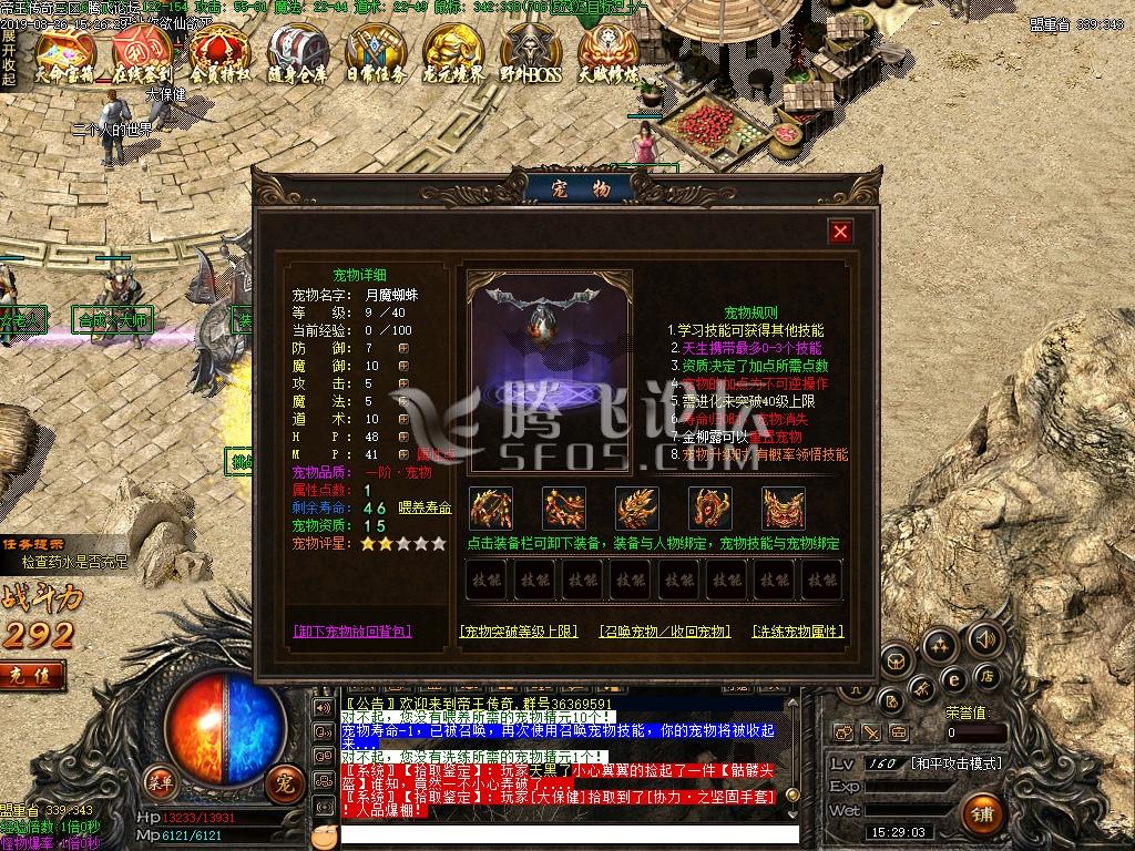 【宠物系统】: 宠物有各种品阶,各种技能搭配,宠物养成系统