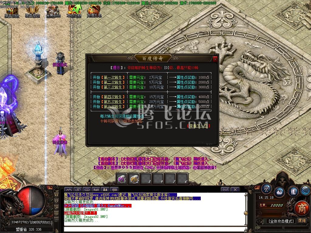 本次更新:转生可以使用天赋属性,天赋属性提升需要击杀蚩尤,每次击杀蚩尤提升1个档次,最高可以提升5个档次,天赋属性一定程度提高总体战斗力!!