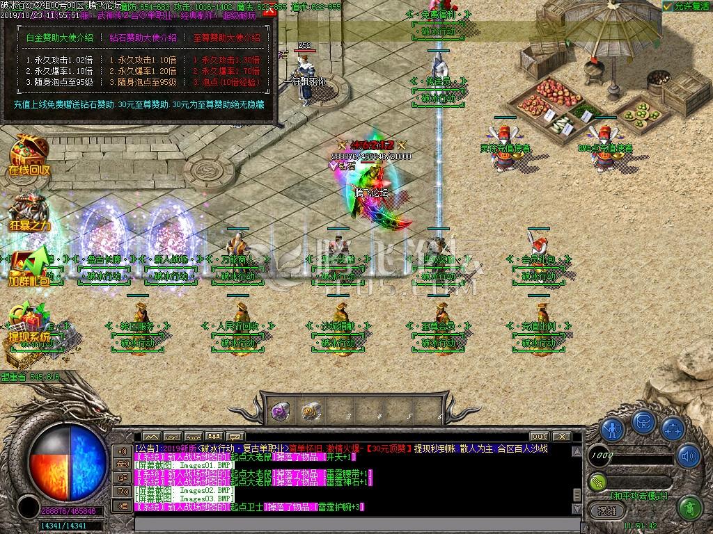 9月独家1.80飞流火龙三职业-带假人-带光柱-终极回收-沙城捐献-生肖塔-神魔修炼