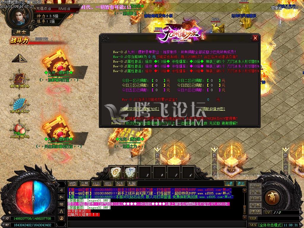 11月九州缥渺录单职业带假人版本|第三大陆|狂暴之力|捐献系统