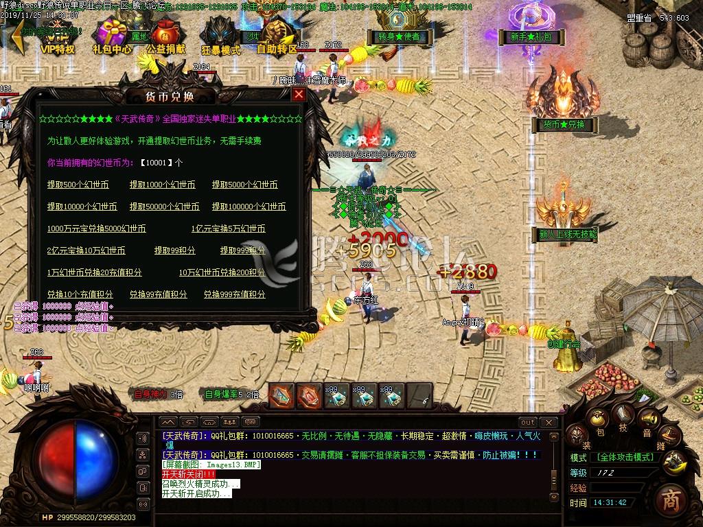 【公告】:|元宝比例 1:20万元宝 1:10点荣誉 1:2000幻世币 1:40积分