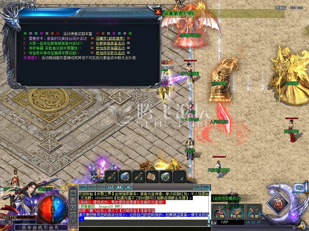 12月1.80伍佰火龙三职业商业版本库-带假人光柱-自动回收-生肖达人-剑甲强化