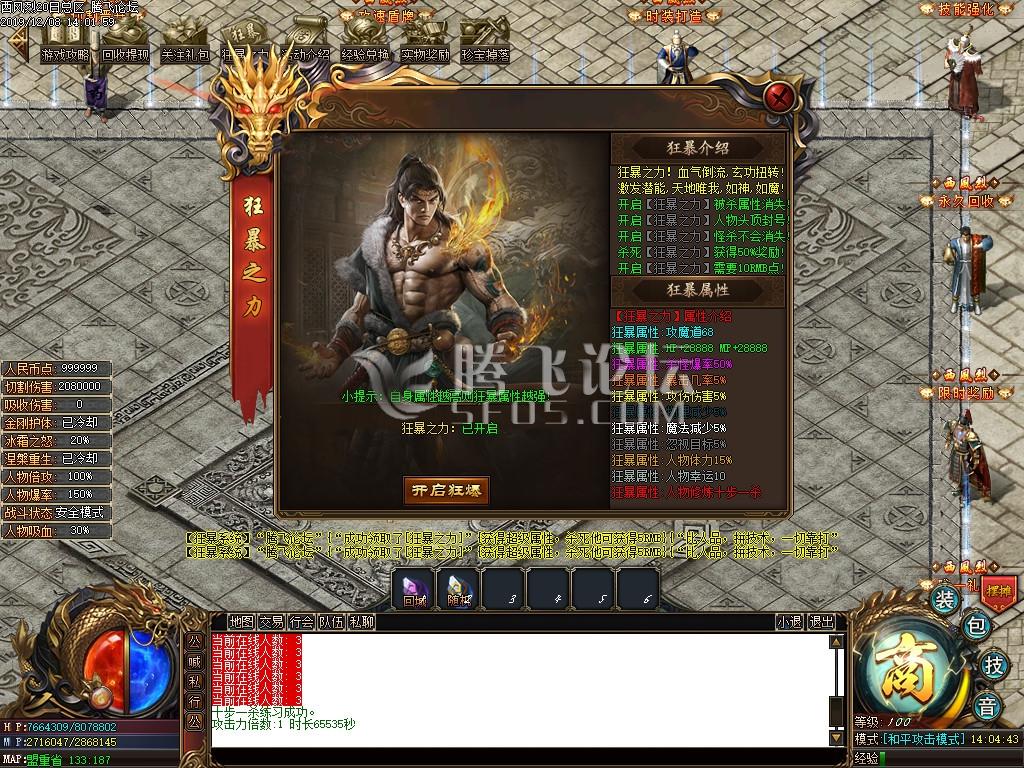 ①:本服领QQ群礼包可获得永久冰冻、刀刀切割、逐日和开天斩等,真正做到不花钱上线就能撸死所有BOSS…