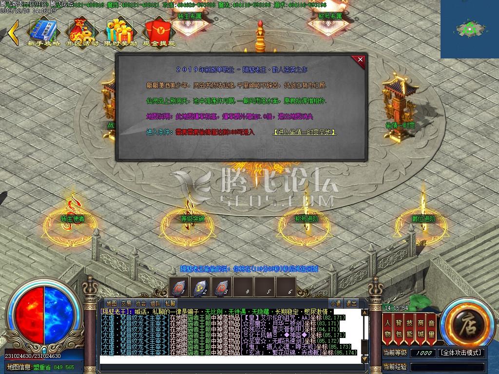 12月大服虎啸火龙上岛三职业商业版本库-带假人光柱-自动回收-爆率转盘-武器兑换