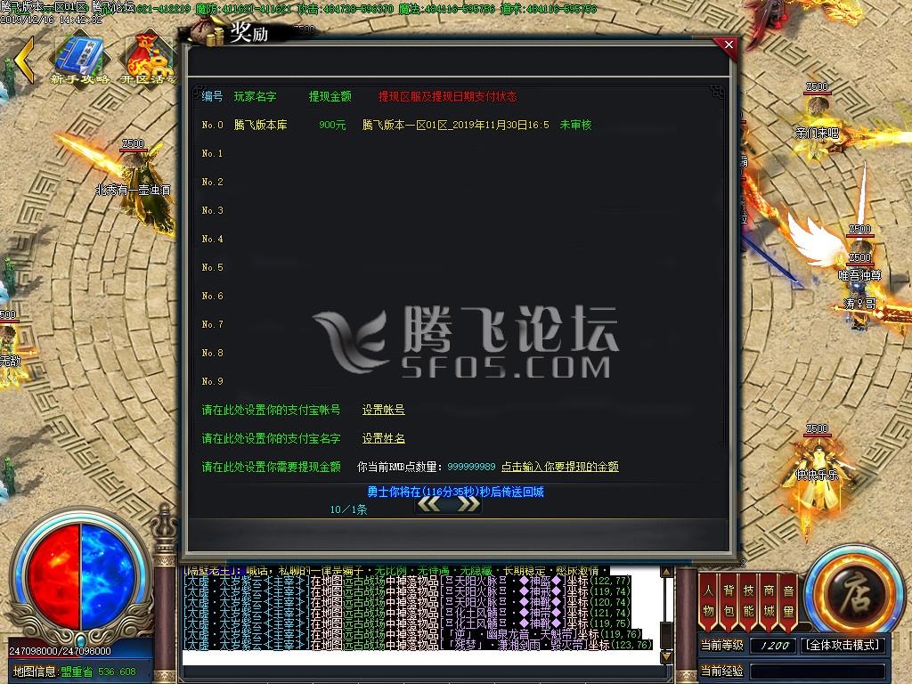 12月仟佰火龙三职业无限刀攻速传奇一条龙-神龙许愿塔-红蓝双方-爆率转盘