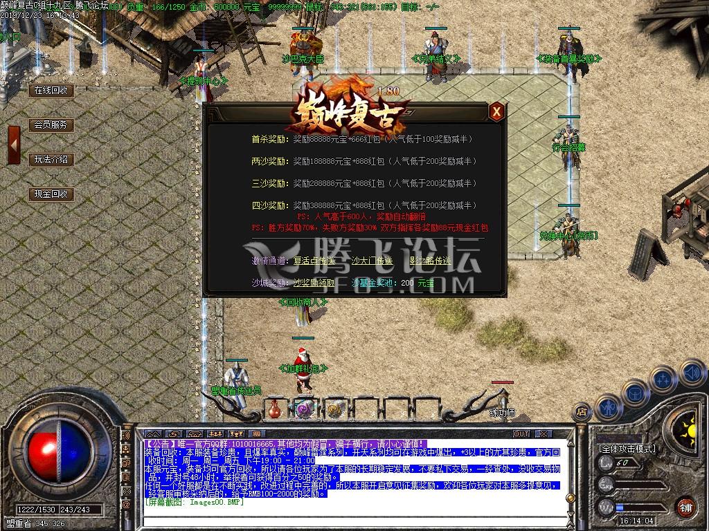 【开区时间】 每天两区 第三天合区拿沙 沙巴克奖励10W元宝+500