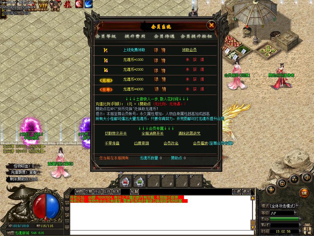 【元宝比例】:1元=1赞助点 游戏内兑换各种游戏币 !