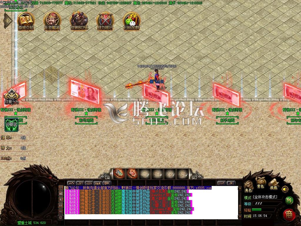 ③:开通一个。狂暴模式(额外增加0.4倍神力+基础神力=1.4倍神力。全元素加10%。攻魔道增加8888).【10元RMB充值】