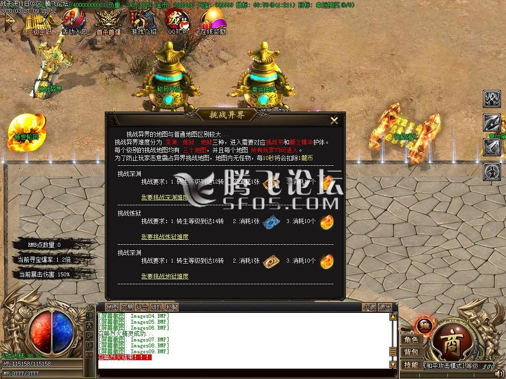 【游戏需知】:新手转生→本服特色 免费转生 提高人物倍攻。有专属转生地图
