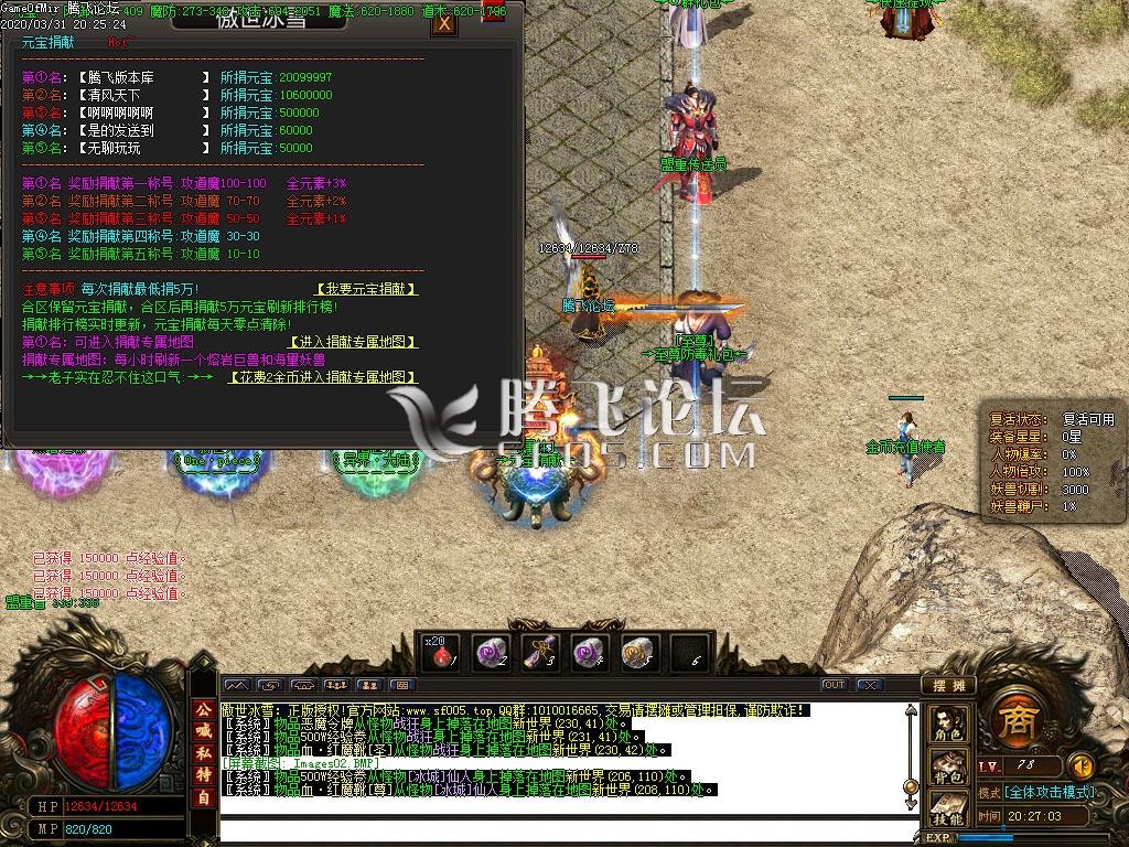 8月耀世冰雪攻速单职业-带假人-带光柱-装备加星-沙捐-大小神魔富豪捐献