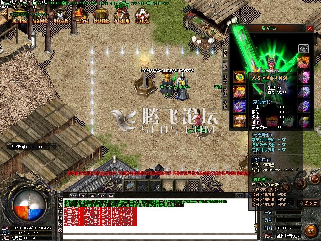 5月风云火龙刀速二合一单职业传奇版本-带假人-光柱-实物狂暴-沙捐