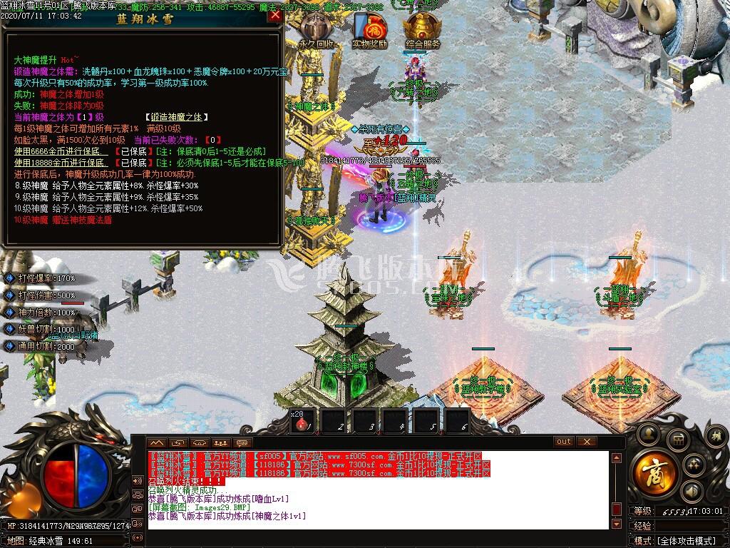 7月蓝翔冰雪单职业-带假人-带光柱-沙捐-狂暴-自助账号交易-通天神塔