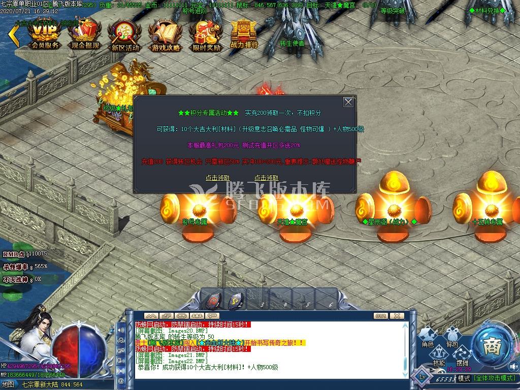 5月独家天涯火龙三职业-带假人带光柱-沙城捐献-太乙真人-RMB--官位系统
