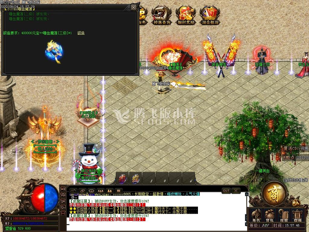 305级+30转+满称号+满元神+嗜血魔莲MAX可免费新区588充值-三次合区后无法