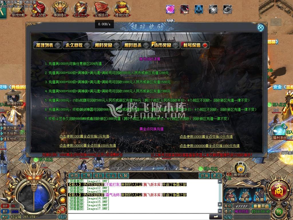 2020-08-10【货币充值】本服充值。不卖元宝、充值比例:1:1000红尘币。