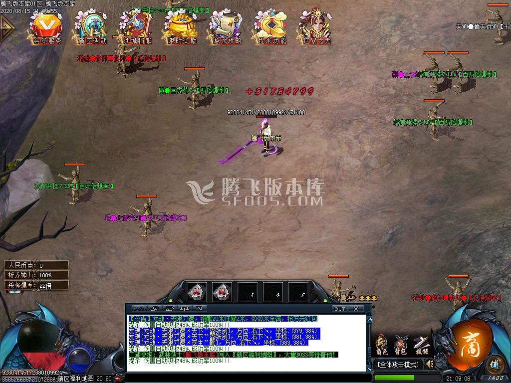 【公告】满消费22米(沙捐+狂暴)无其他消费!上线赞助免费领 自动!一键捡物!