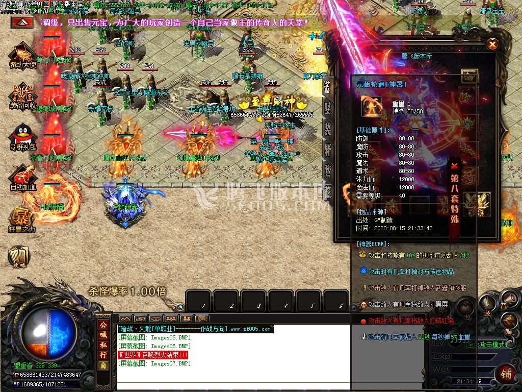 8月独家无上火龙单职业复古-带假人-带光柱-沙捐-湖底深渊-无上神炉-神魔之体