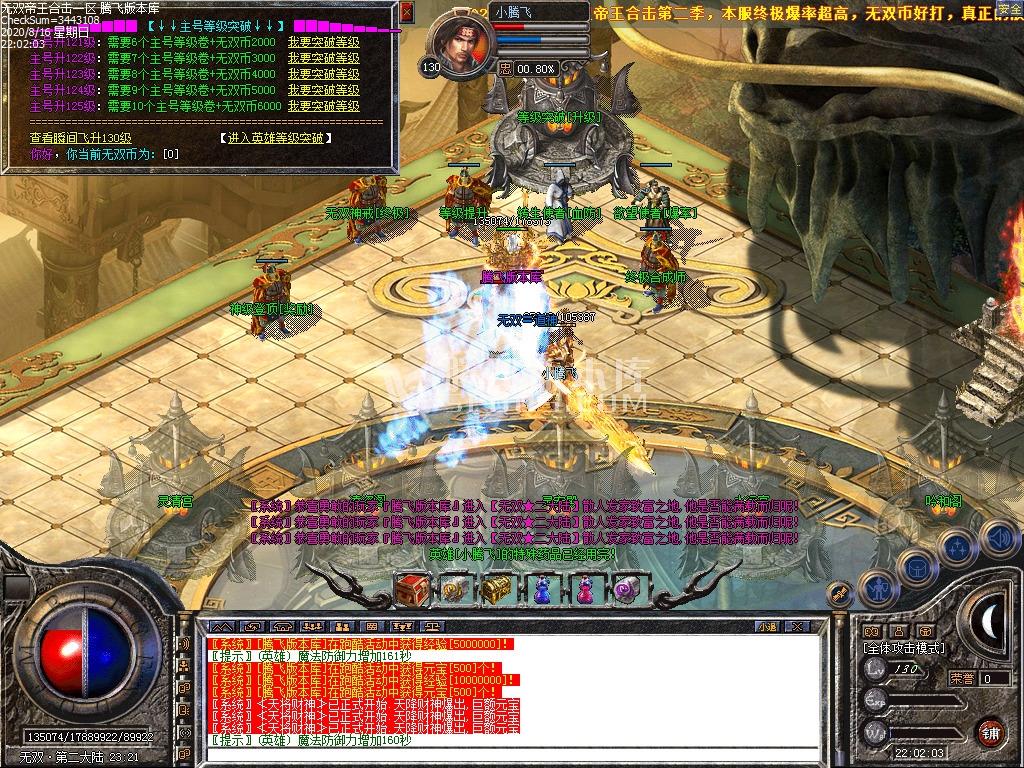 8月独家1.80战魂帝王合击-带假人-带光柱-沙捐-人民币-爵位捐献-神级登顶