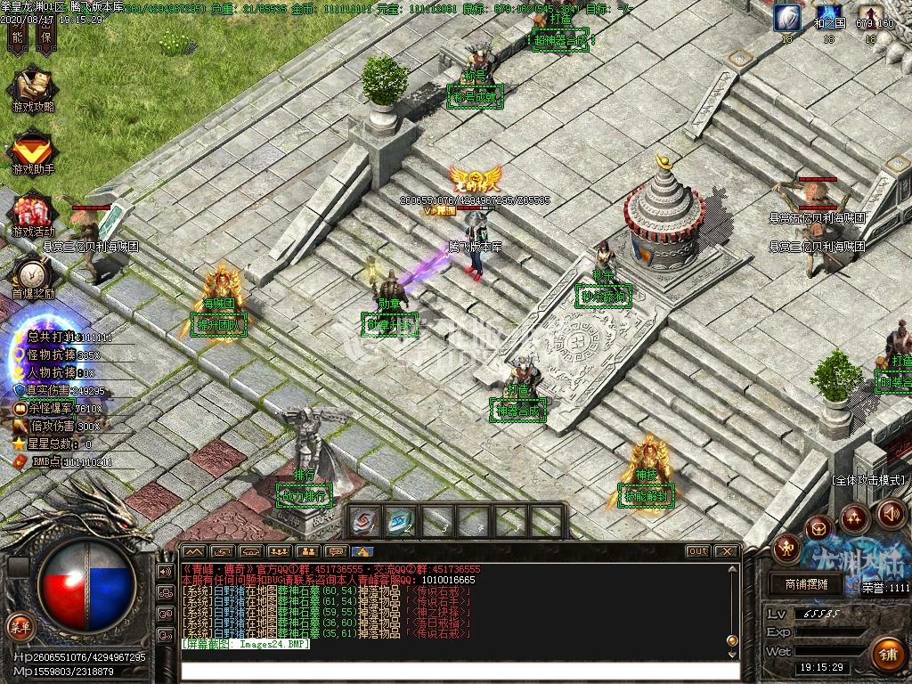 等有回血了和一两万的血量可以打复古类的BOSS,爆率很高会掉落充值,获得元宝,前期发育必杀