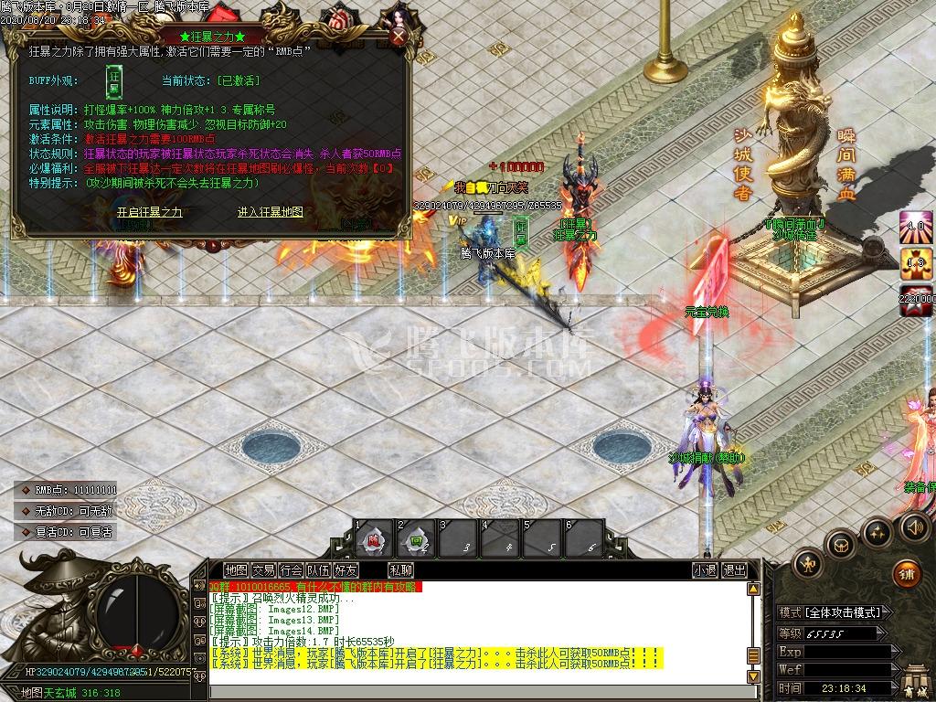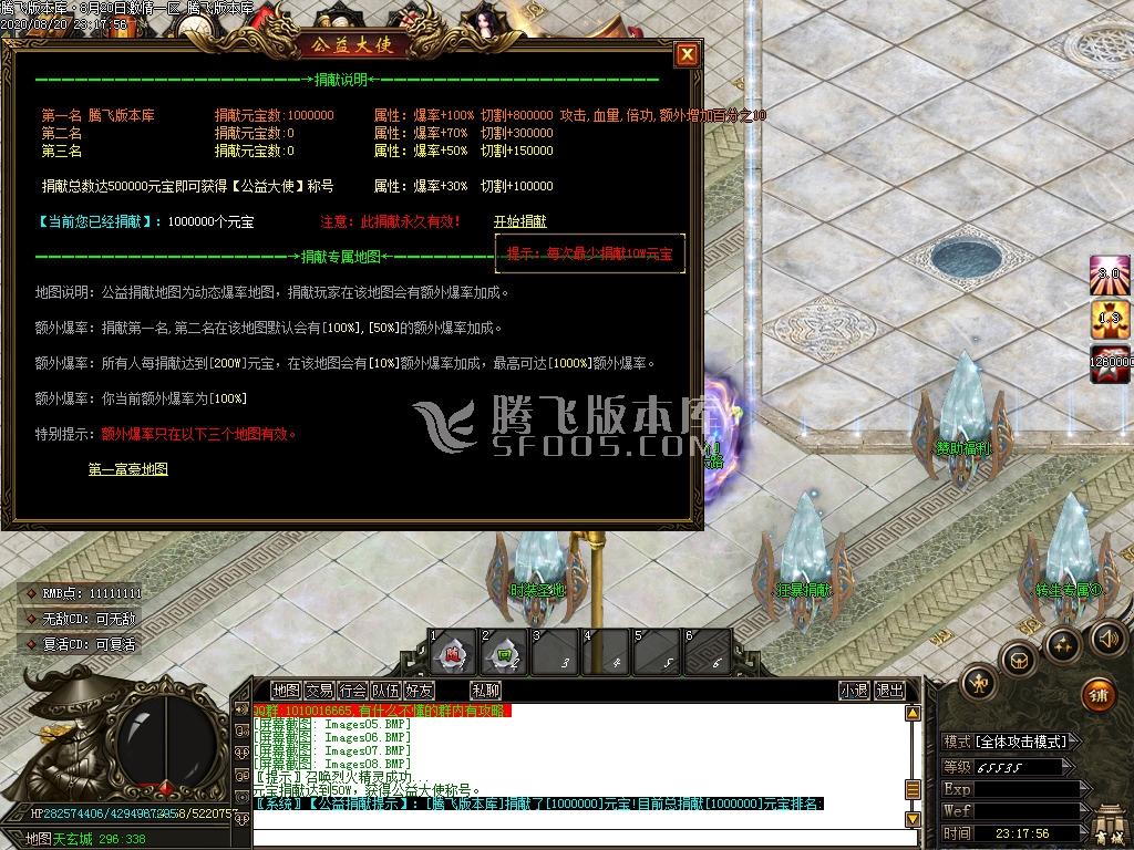 5月独家天涯火龙三职业-带假人带光柱-沙城捐献-太乙真人-RMB--官位系统
