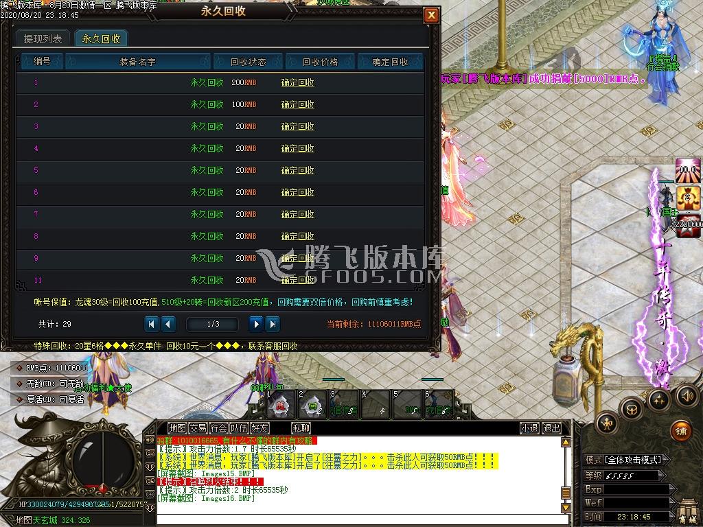 5月远古神话刑天三职业神器-带假人带光柱带攻略-沙捐-RMB回收-自动回收