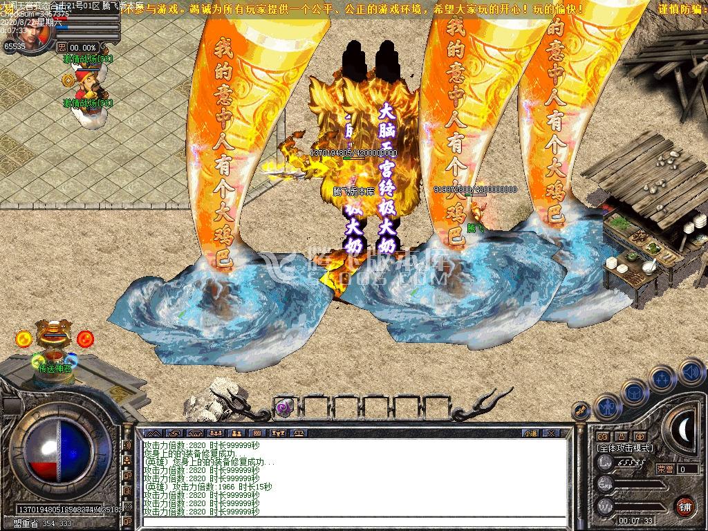 玩法很简单.80元满回馈+30元沙城捐献(双倍暴率)玩家进入终极大陆.顶级地图就是干3小时双终极套