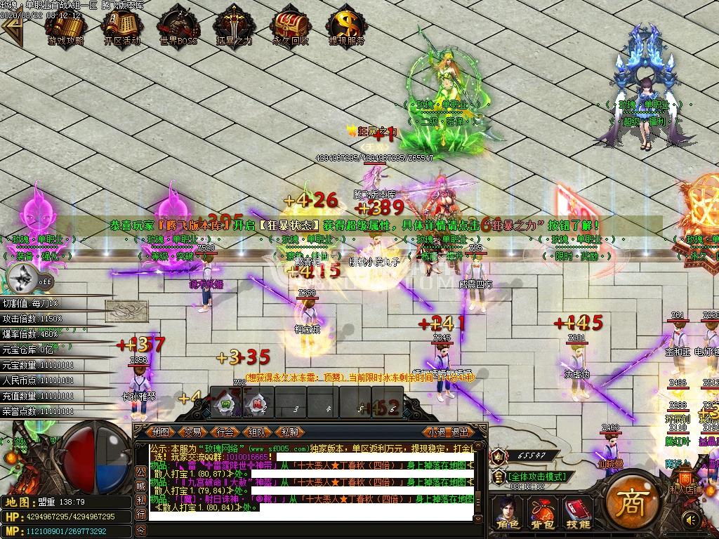 8月玫瑰单职业攻速无限刀-带假人-带光柱-沙捐--狂暴-永久回收-比武擂台