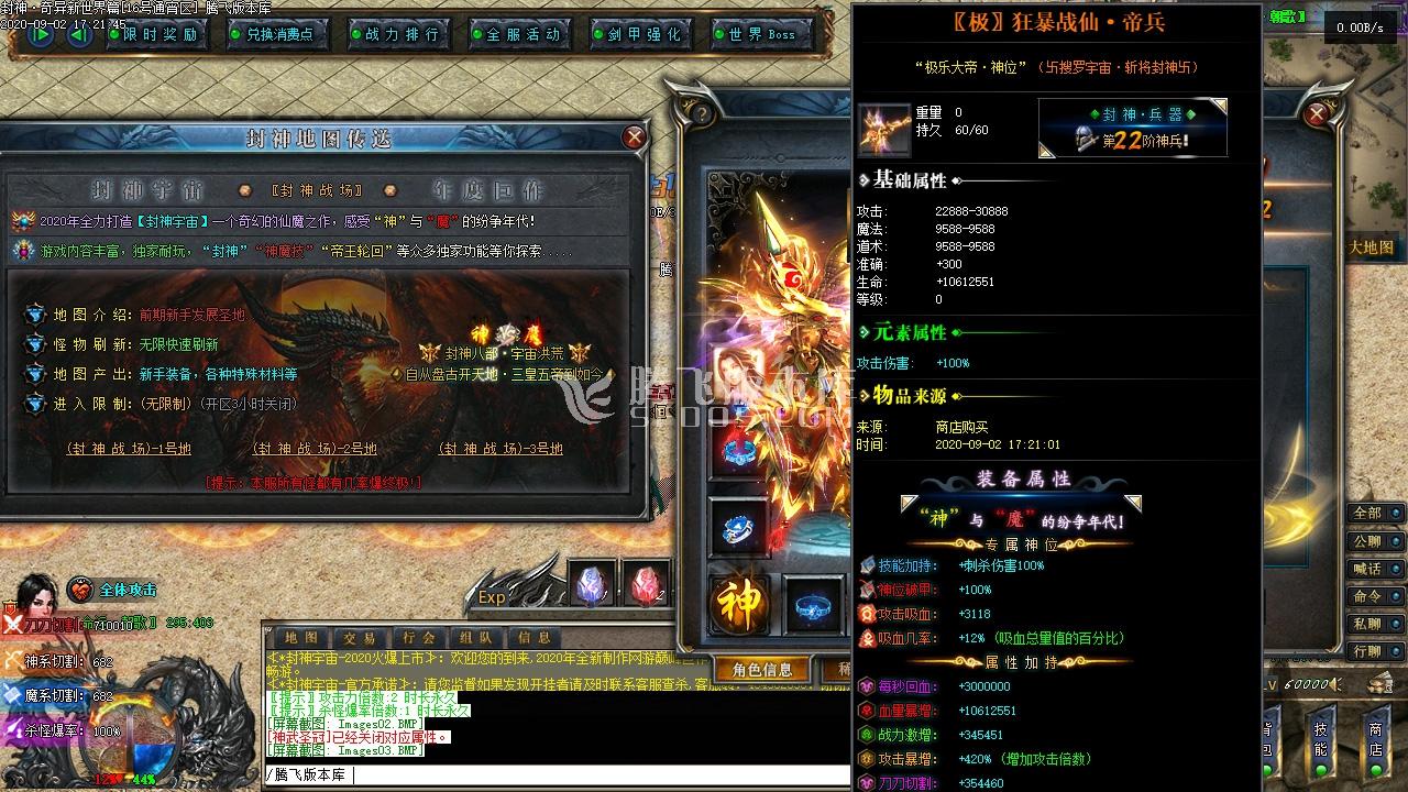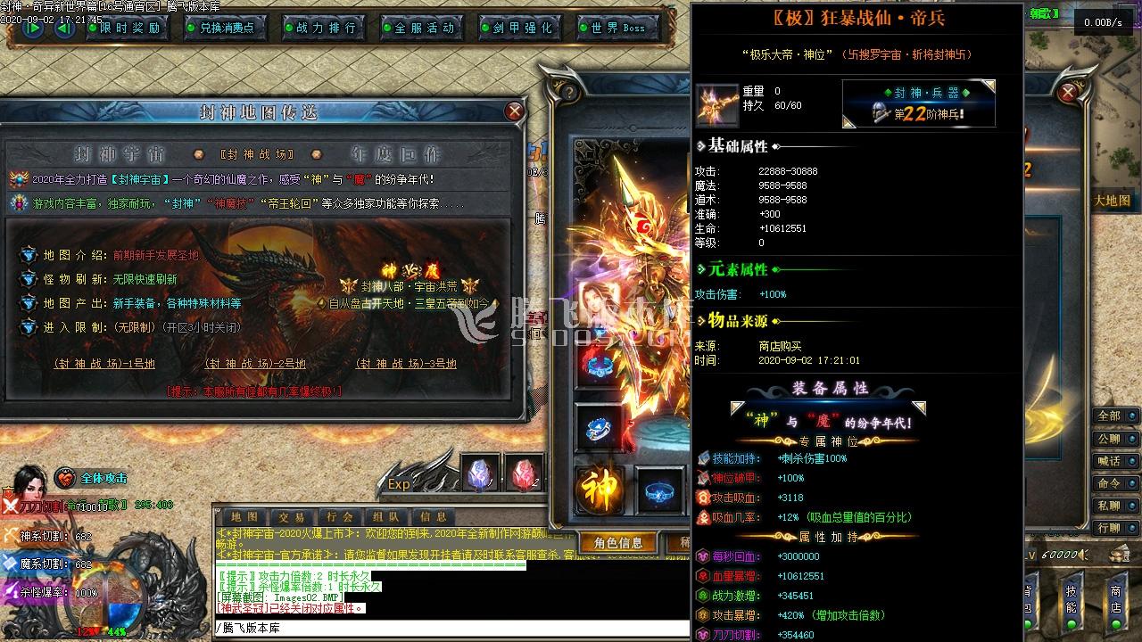 9月封神宇宙·武王伐纣单职业完整开区-带假人-神武圣冠-魅惑强化