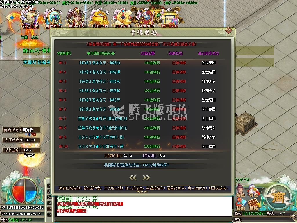 鉴于有的兄弟脸黑前期不爆装备。本服有逆袭的机会开区一小时开启沧澜通天塔活动