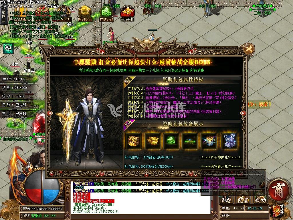 3.土豪路线:领赞助.进行沙捐.开狂暴.300大礼包安排!直接下二大陆挑战最强BOSS