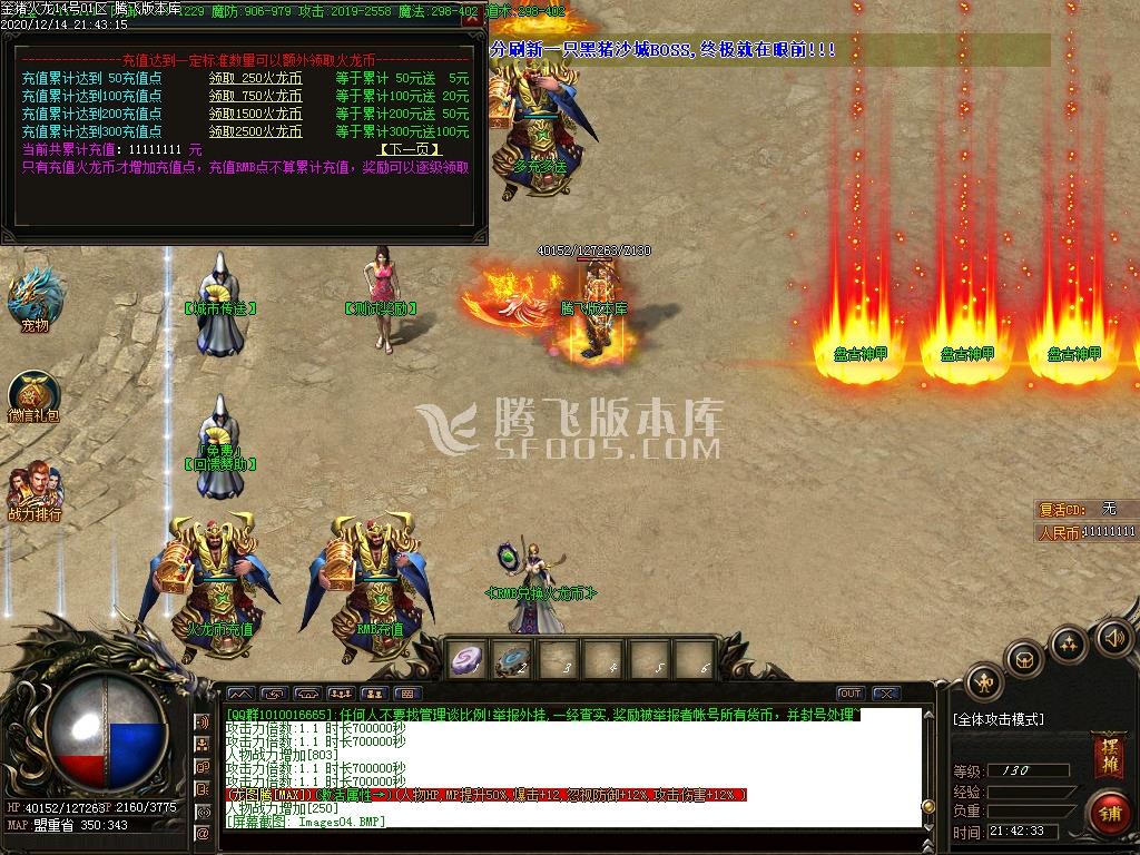 【猪猪火龙】 火龙币比例1:50,多充多送,测试充值开区赠送30%,设有测试区奖励开区可领