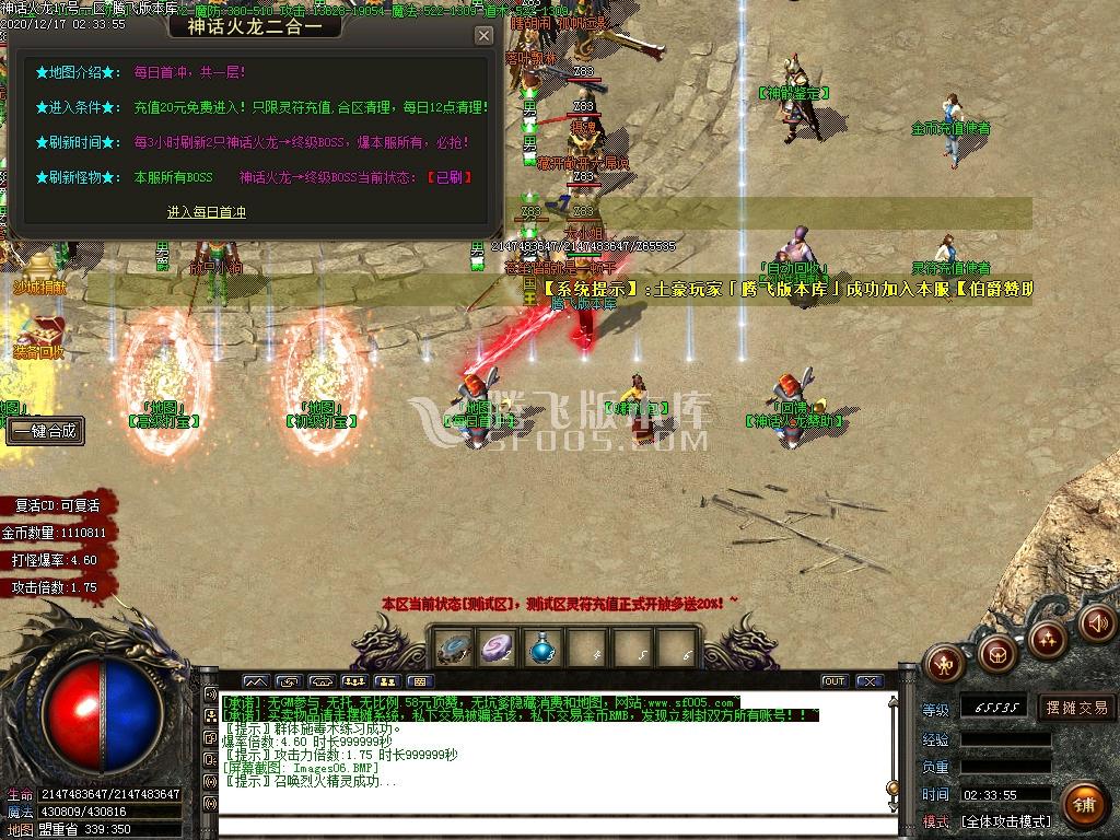 12月神话火龙单职业微变第二季二合一-带假人-带光柱-自动回收-带攻略-沙城捐献