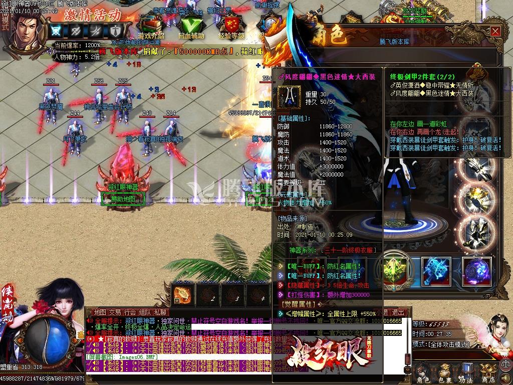 6.捐献狂暴专属活动.开区480分钟开放,地图内刷新2只BOSS,必爆保值装备!!