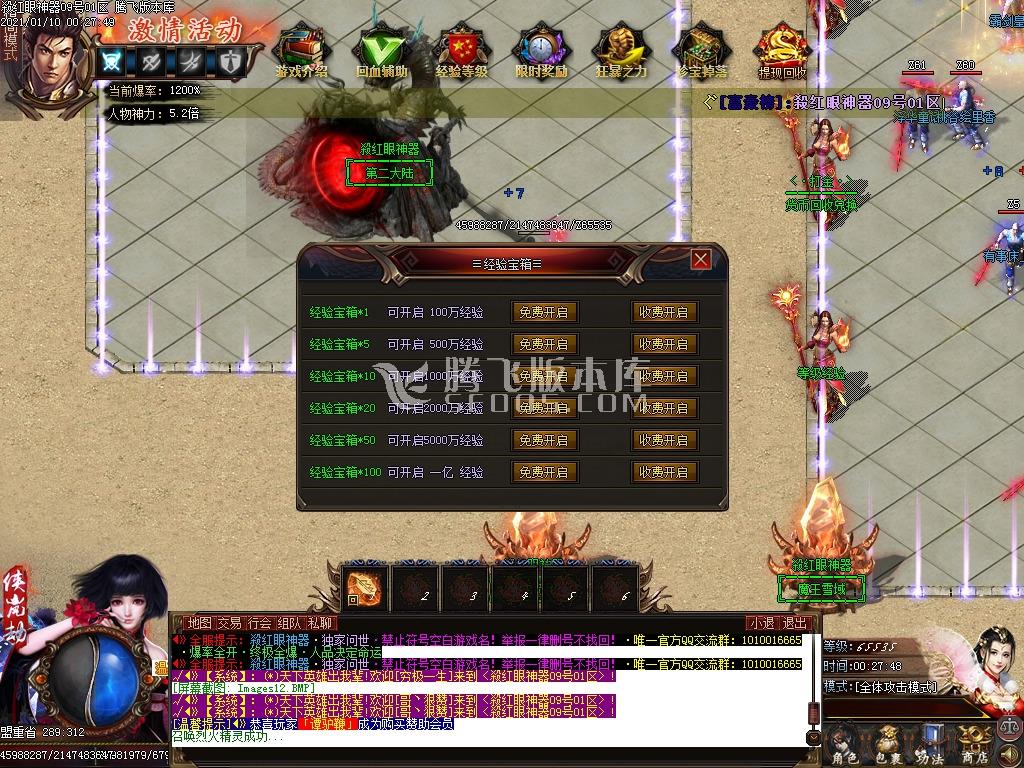 1.必爆等级卷.开区30分钟开启,地图内必爆500个等级提升卷,进入要求沙捐+狂暴玩家才可进入!