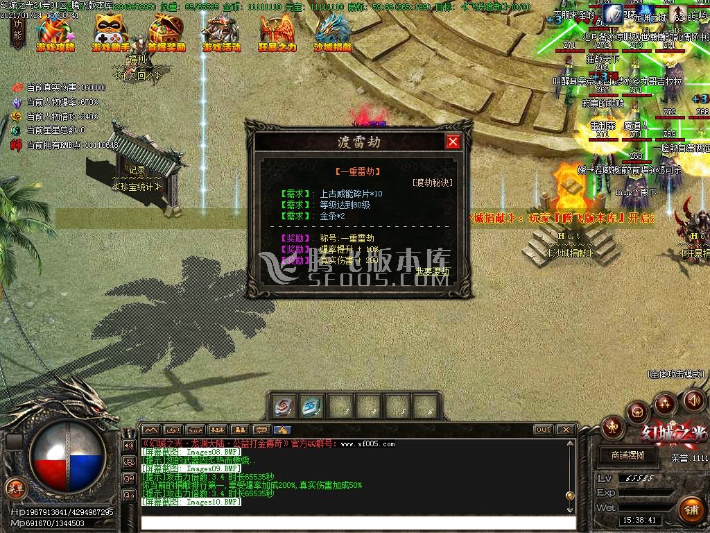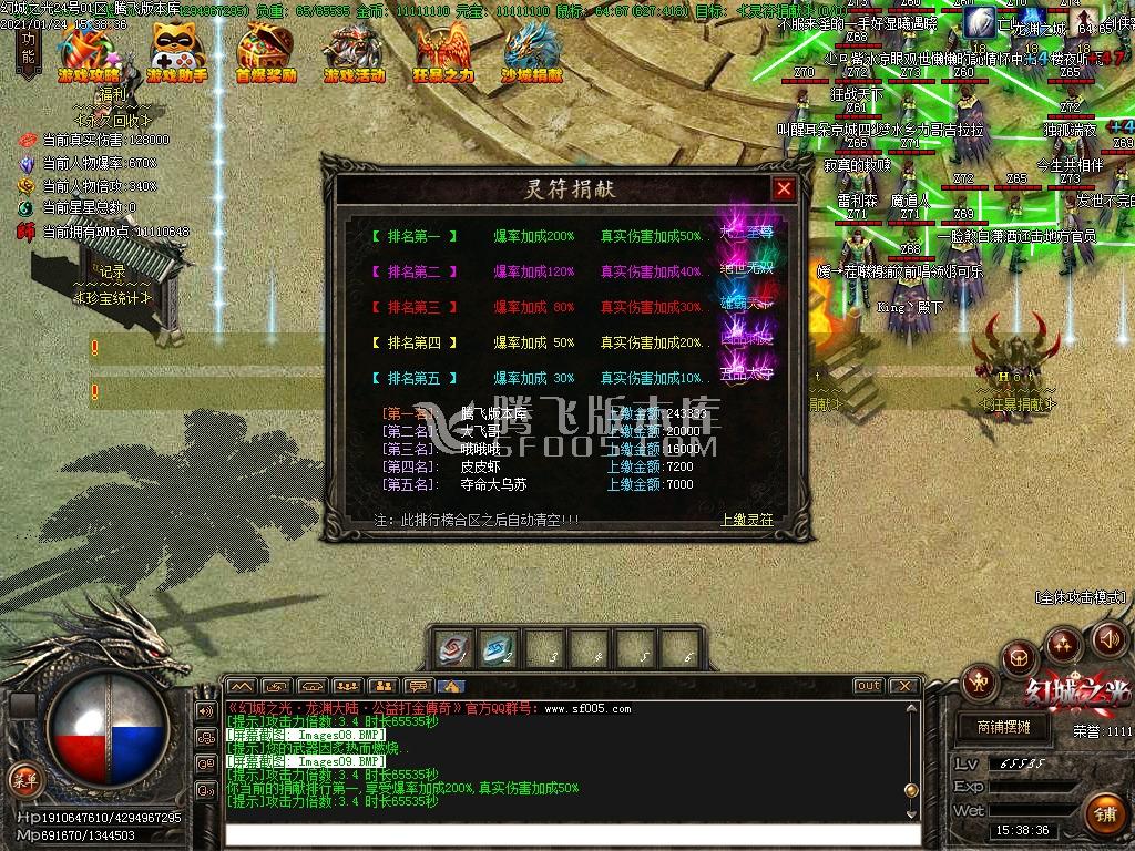 2.充值30RMB,沙城捐献,触发:真伤+50000,真伤翻倍叠加10%,以及其他属性!