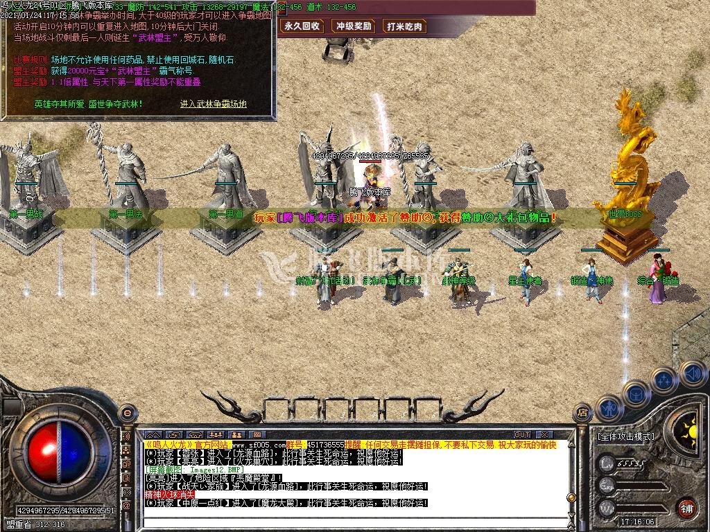 8月梦想火龙第三季上岛公益三职业开区一条龙-太乙真人-装备升级-行会争霸-沙捐