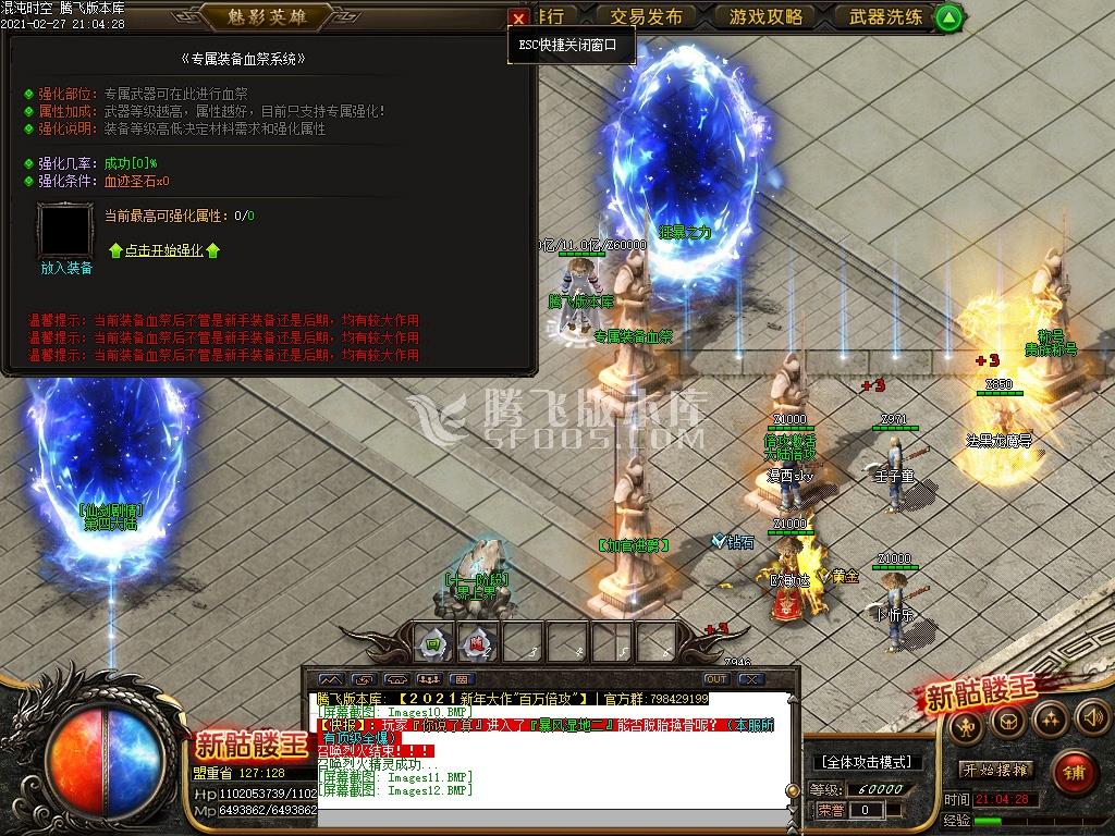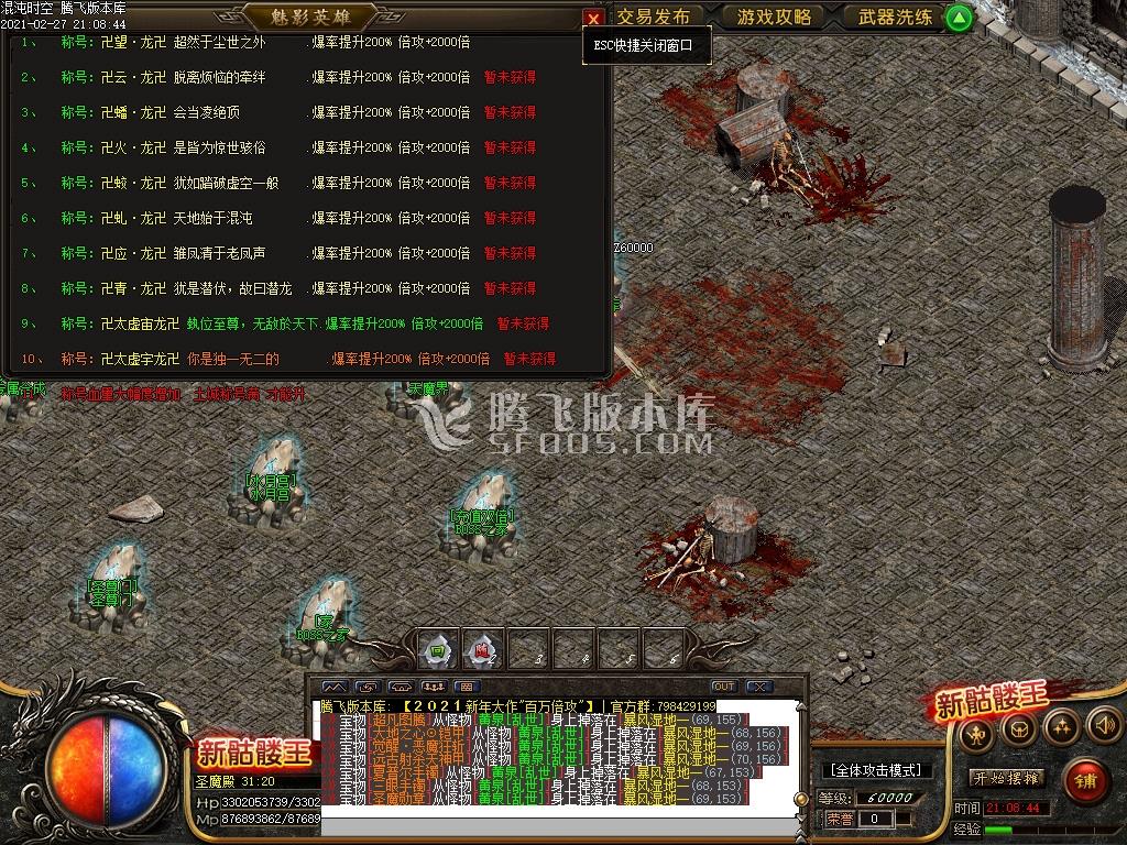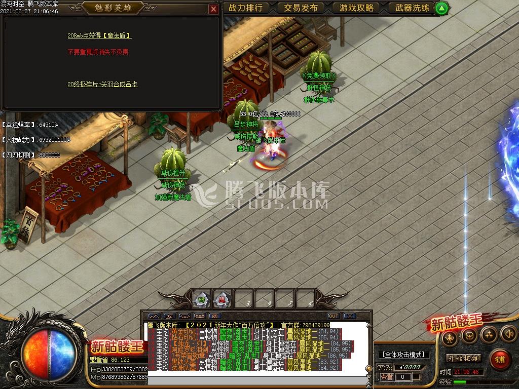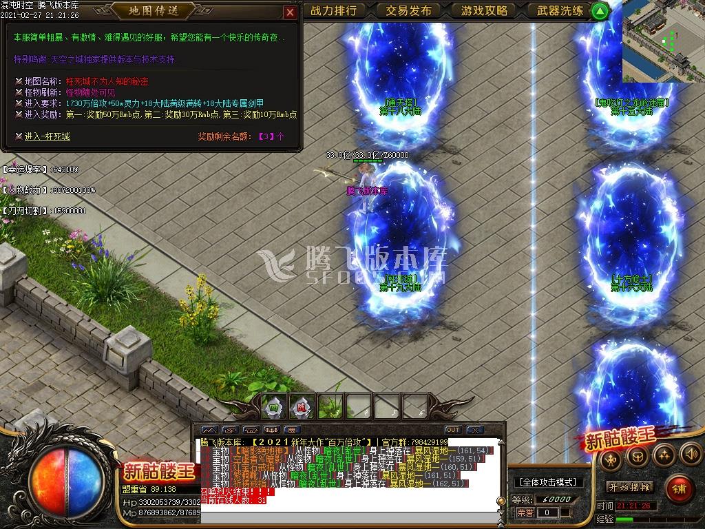 2月混沌时空六职业倍攻神力十九大陆版-带假人光柱攻略-沙城捐献-专属BUFF [修改]